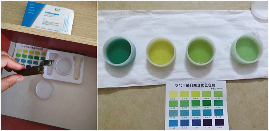 檢測家具內甲醛,查找甲醛污染源,推薦用甲醛自測盒,而不是電子類甲醛檢測儀。甲醛自測盒采用國家標準的甲醛檢測方法,利用甲醛易溶于水的原理,自然吸收空氣中的甲醛,檢測結果穩定可靠。