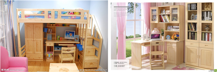松木、橡木等“純實木”家具,近年來特別流行用于制作兒童房家具。這類家具一般油漆異味較小,主要問題是木材本身的氣味(特 別是松木氣味明顯),以及家具內(nèi)的甲醛釋放。