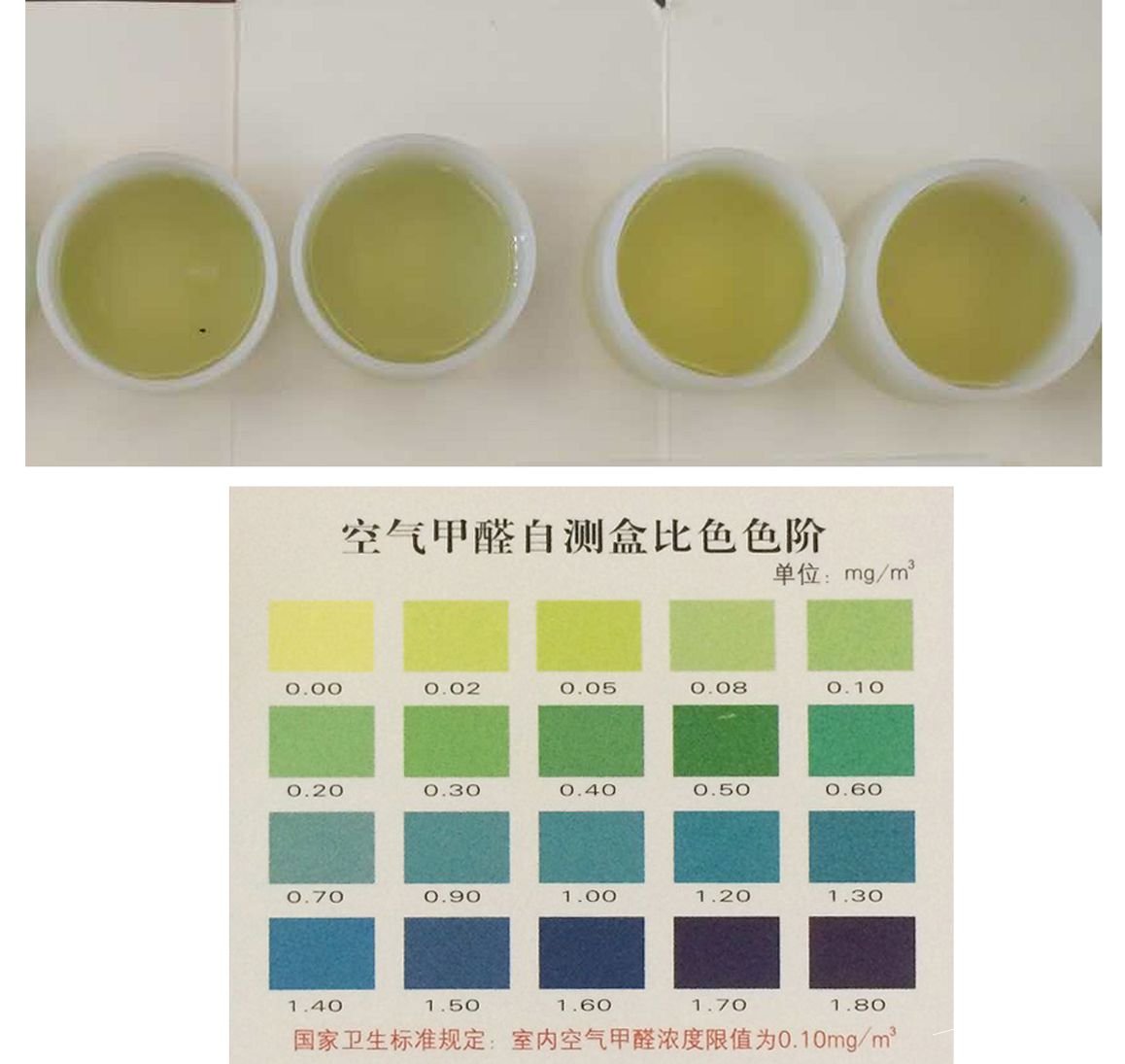 將各個(gè)家具內(nèi)的檢測結(jié)果同時(shí)放在一張白紙上,對(duì)照比色卡,是否為污染源一目了然。整個(gè)過程簡單又便捷。