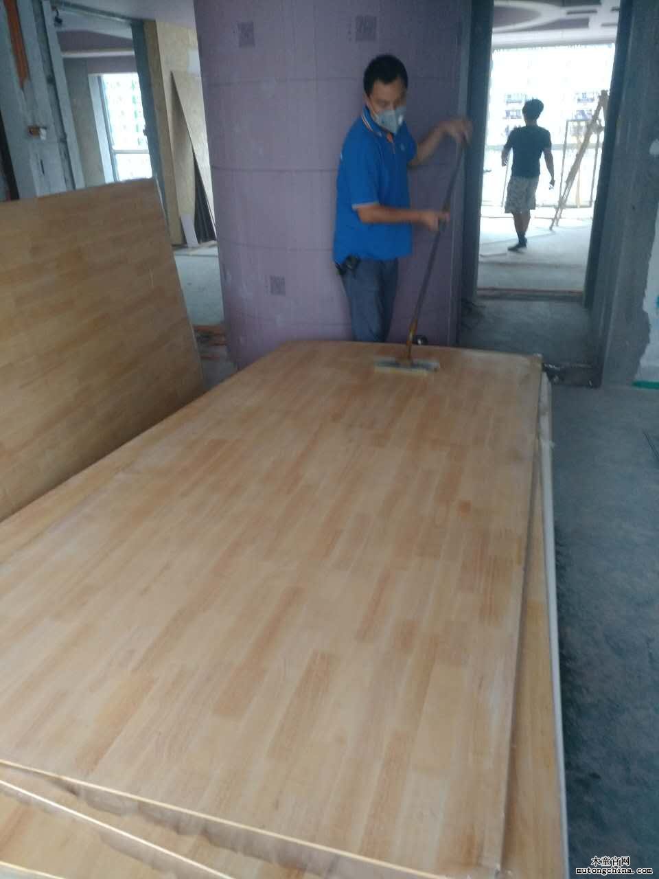 圖為木童工程師在裝修過程中進行