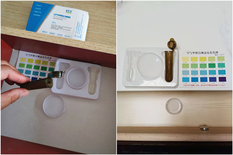 用自測盒檢測書桌抽屜,同時用自測盒檢測衣柜,如果有床箱也要同時檢測,三個結果出來后一對比,到底是新書桌的問題,還是舊衣柜、床的問題,清清楚楚,一目了然。到底哪里有問題,心里一下子跟明鏡似的,全清楚了。剩下的就是如何解決問題了。