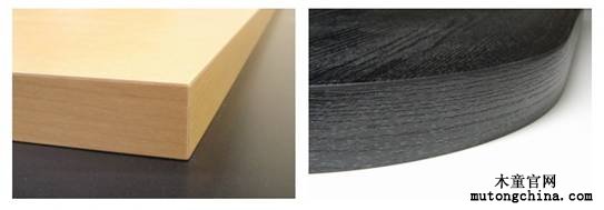 因此,三聚氰胺板家具的制作工藝中,面板與封邊是兩道工序,面板是三聚氰胺浸漬紙飾面,封邊則多使用PVC封邊條。從外觀看,面與邊成90度直角,有時板面圖案與封邊條圖案也不同,雖然兩者的顏色比較接近。而PVC貼皮、木紋裝飾紙貼皮的板式家具,多數情況下不使用封邊條,而是直接將PVC軟片,或木紋裝飾紙包邊成型,邊角也可以是圓弧形,這是三聚氰胺板家具的又一大特征。