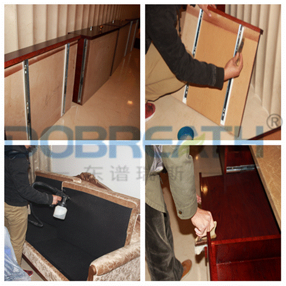 經過多方嚴格篩選,特變電工總部與我公司新疆服務商簽訂治理合同,要求在7日內完成4棟專家樓的室內空氣污染治理。 專家樓內的甲醛污染主要來自密度板床箱,TVOC污染主要來自衣柜、油漆面、抽屜、沙發、及地毯。污染嚴重,施工任務重,經過7天7夜的連續奮戰,我公司出色地完成了任務,治理結束后7天,專家樓內已經沒有裝修后的難聞氣味,空氣清新,領導非常滿意。